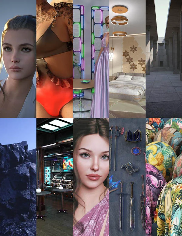 Cloud tags: Festival, Bundle 8, Hawaiian, Fabric, Shaders, Iray, Adventurers, Toybox, Aftermath, Volcanic, Swimsuit, Ruffle, Genesis 9, Addy, Kate, Suuri, Sali, dForce, Nathan, Hair, Noir, Pub, Modern, Apartment